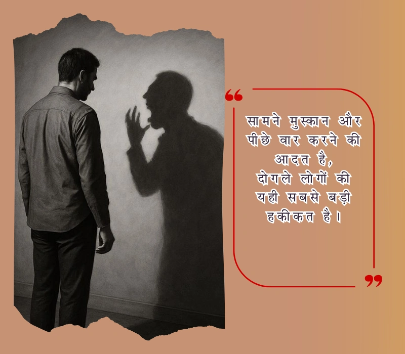 अगर आपने कभी किसी अपने से धोखा खाया है या किसी के बदलते चेहरे को करीब से देखा है, तो यहाँ आपको दोगले लोगों पर शायरी मिलेगी जो आपके मन की बात कह देगी। ये शायरी सिर्फ पढ़ने के लिए नहीं, महसूस करने के लिए है। आप इन्हें अपने स्टेटस में लगा सकते हैं, दोस्तों के साथ शेयर कर सकते हैं या बस चुपचाप पढ़कर अपने दिल को हल्का कर सकते हैं। यहाँ लिखी हर पंक्ति में एक सच्चाई है, एक अनुभव है, जो शायद आपकी कहानी से भी जुड़ा हो।