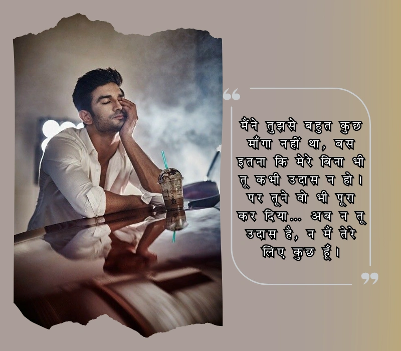 मैंने तुझसे बहुत कुछ माँगा नहीं था, बस इतना कि मेरे बिना भी तू कभी उदास न हो। पर तूने वो भी पूरा कर दिया… अब न तू उदास है, न मैं तेरे लिए कुछ हूँ।